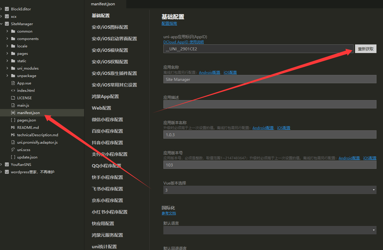 配置基础信息,需要重新获取下AppID,并且记住,下次源码更新的时候,用新获取的AppID,如下图: