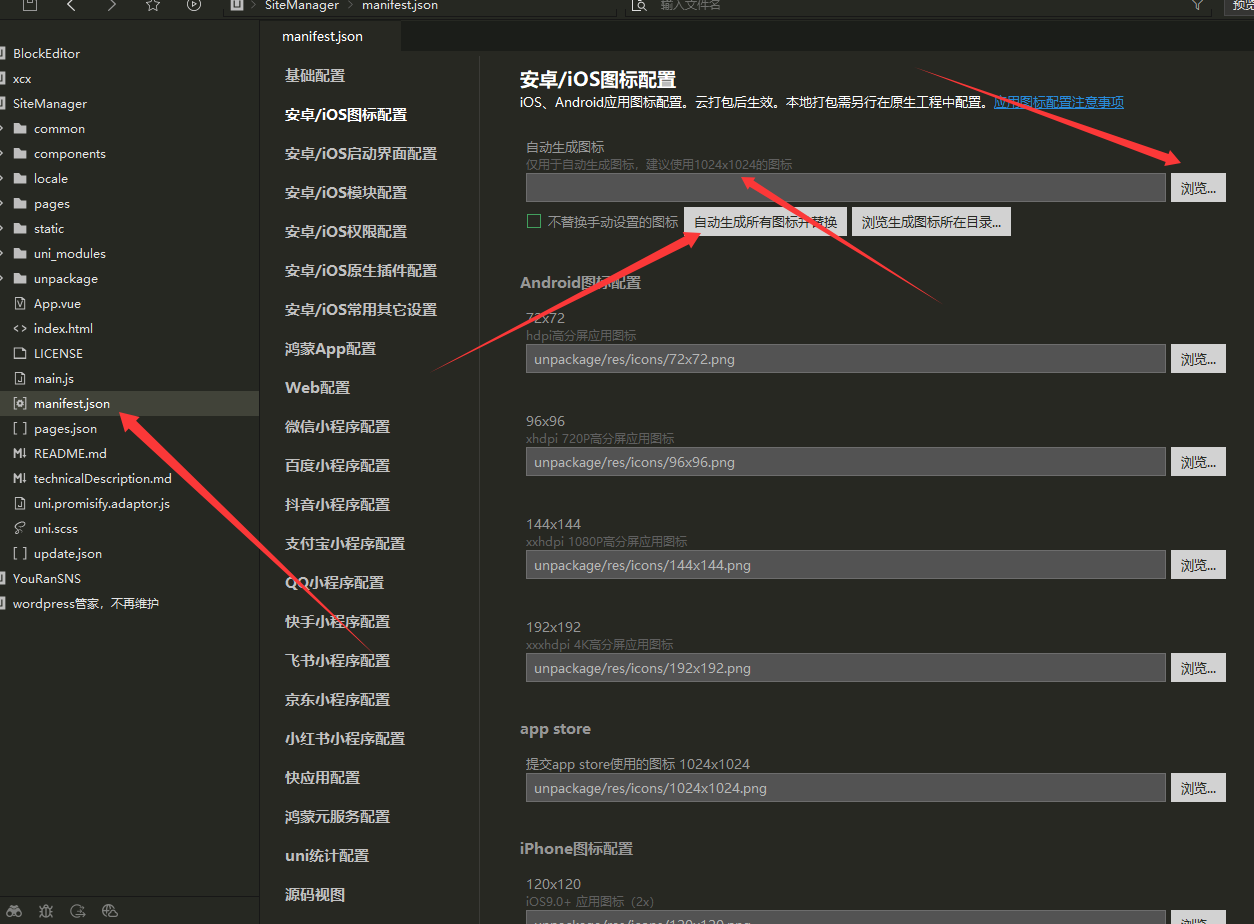 下图是网站管家(Site Manager)的图标,自己设计下,上传,不然打包会出错。